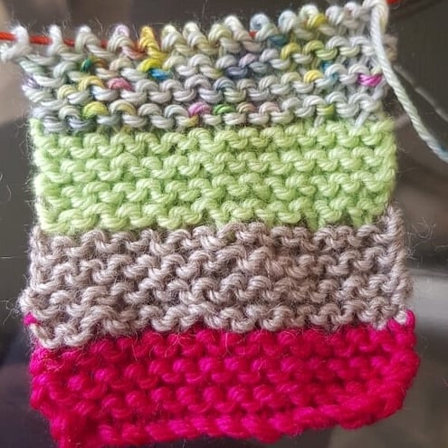 Start using up your nuggets! If you don't like losing at yarn chicken (if you're aiming for clean garter stitch rows) then so long as you have three lengths of your live stitches, you should be good to go.